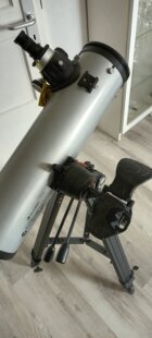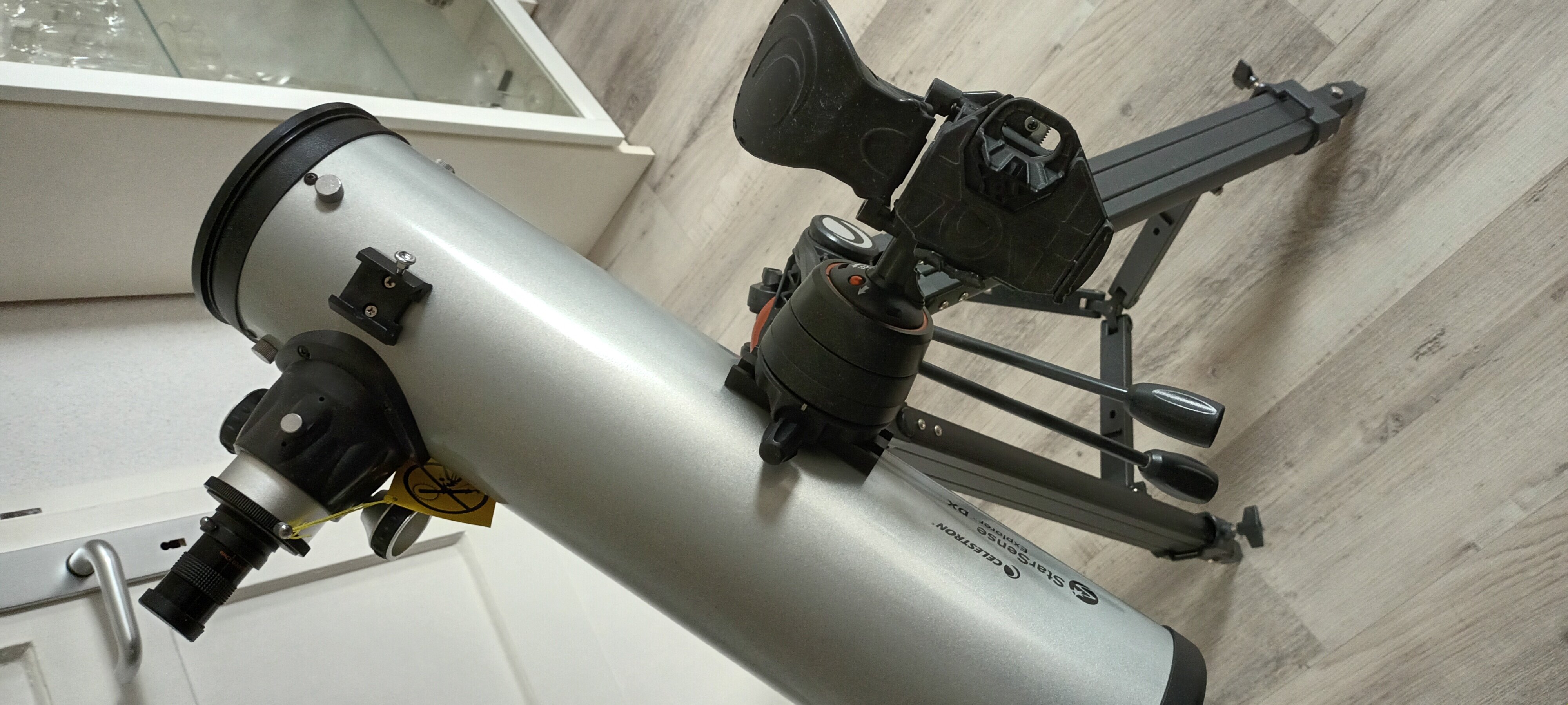 Wir verkaufen ein Teleskop aus unserer Ausstellung. Dein Handy zeigt Dir in einer App den Sternenhimmel und lenkt Dich mit Pfeilen an dein Wunschobjekt. Das kann wirklich jeder.
